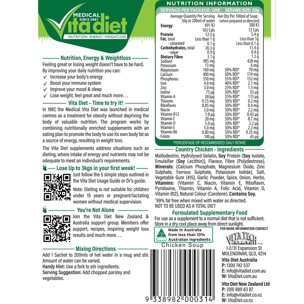 Are you looking for a nutritious and delicious way to lose weight? Look no further than Vita Diet’s Country Chicken Soup 14 Pack!